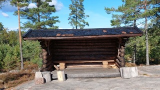Tjärat tak på vindskyddet vid brandtornet av Lennart Grahn och reparation, med nya takspån.